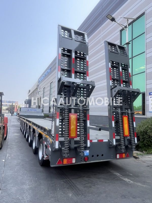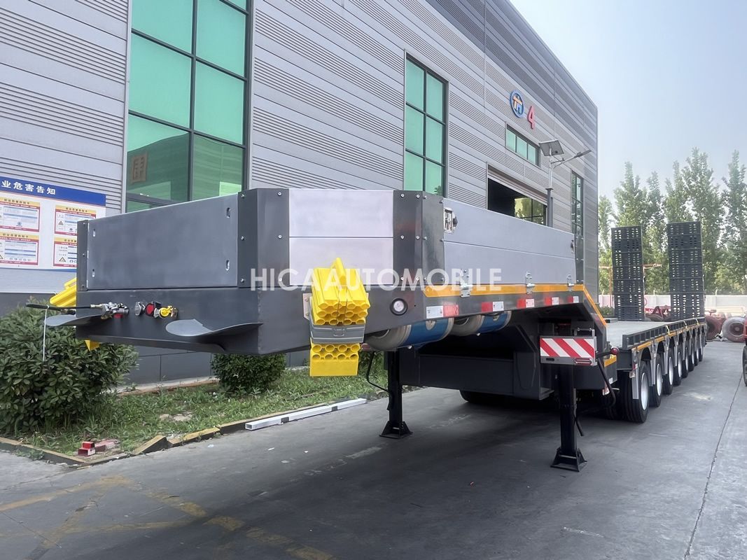 Haichuang 8-axle lowbed semi trailer uses high-strength steel materials to ensure load-bearing capacity, and the load can reach an effective load capacity of 60 to 150 tons.